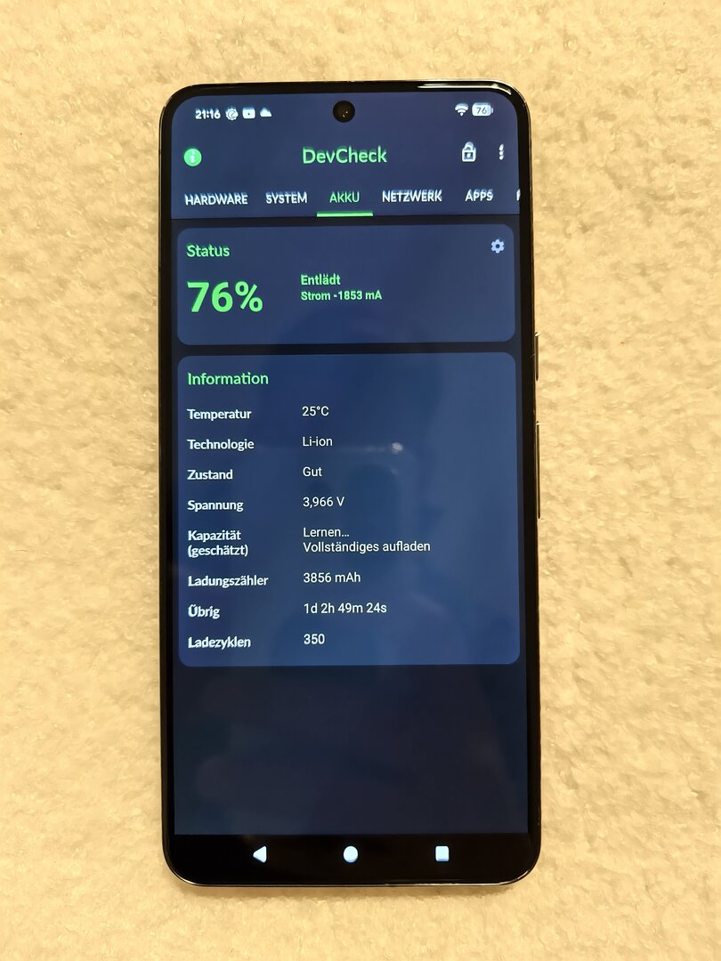 Zudem hat es nur 350 Ladezyklen und wurde immer sorgfältig von 20-80% geladen.