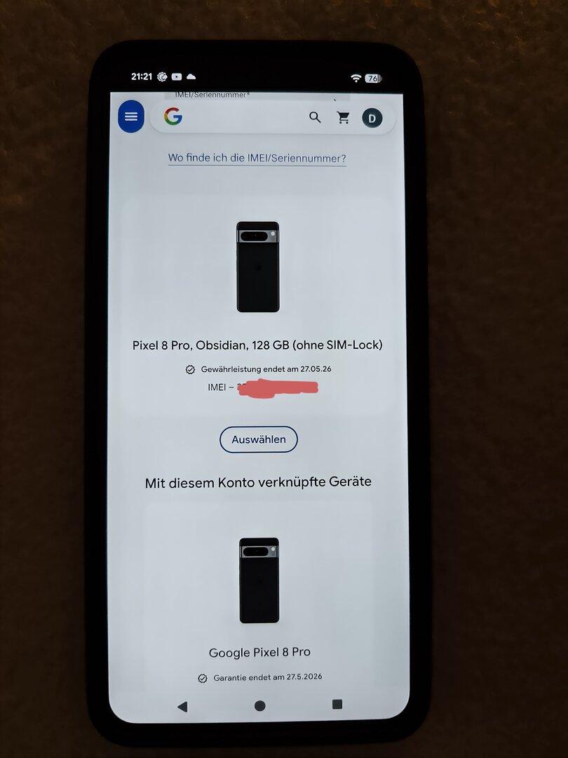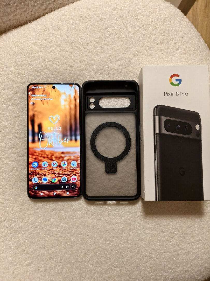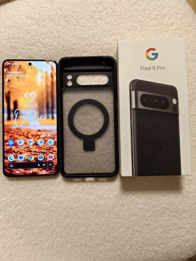 hiermit verkaufe ich mein Google Pixel 8 Pro in der Farbe Obsidian mit 128 GB Speicher.
