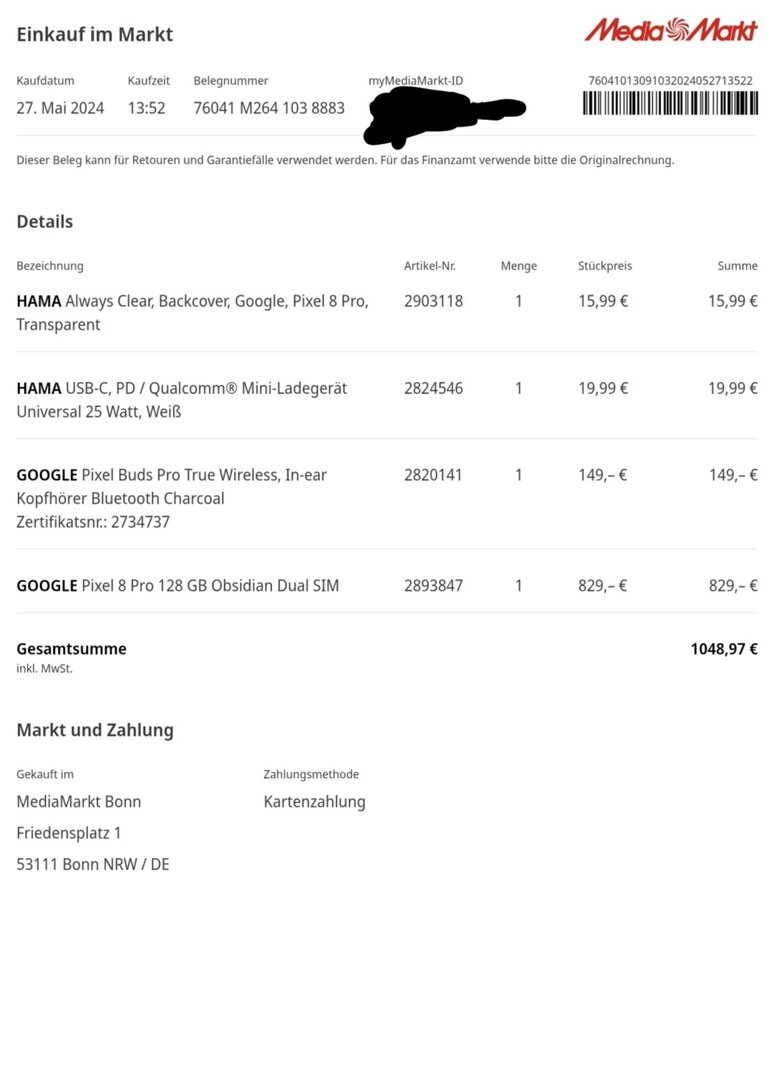 Gekauft wurde es am 27.05.2024, es hat somit noch ein halbes Jahr Garantie, wie man auf den Fotos sehen kann. (Rechnung wird via PDF zugeschickt)
