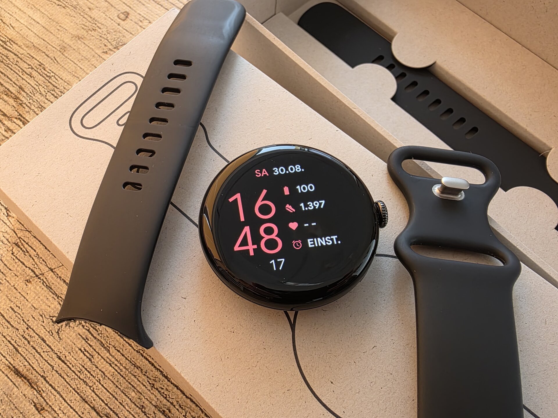 Minimale Gebrauchsspuren an der Uhr sind sicherlich Vorhanden, ich konnte aber nix auffälliges Finden und auch das Display sieht Einwandfrei aus.