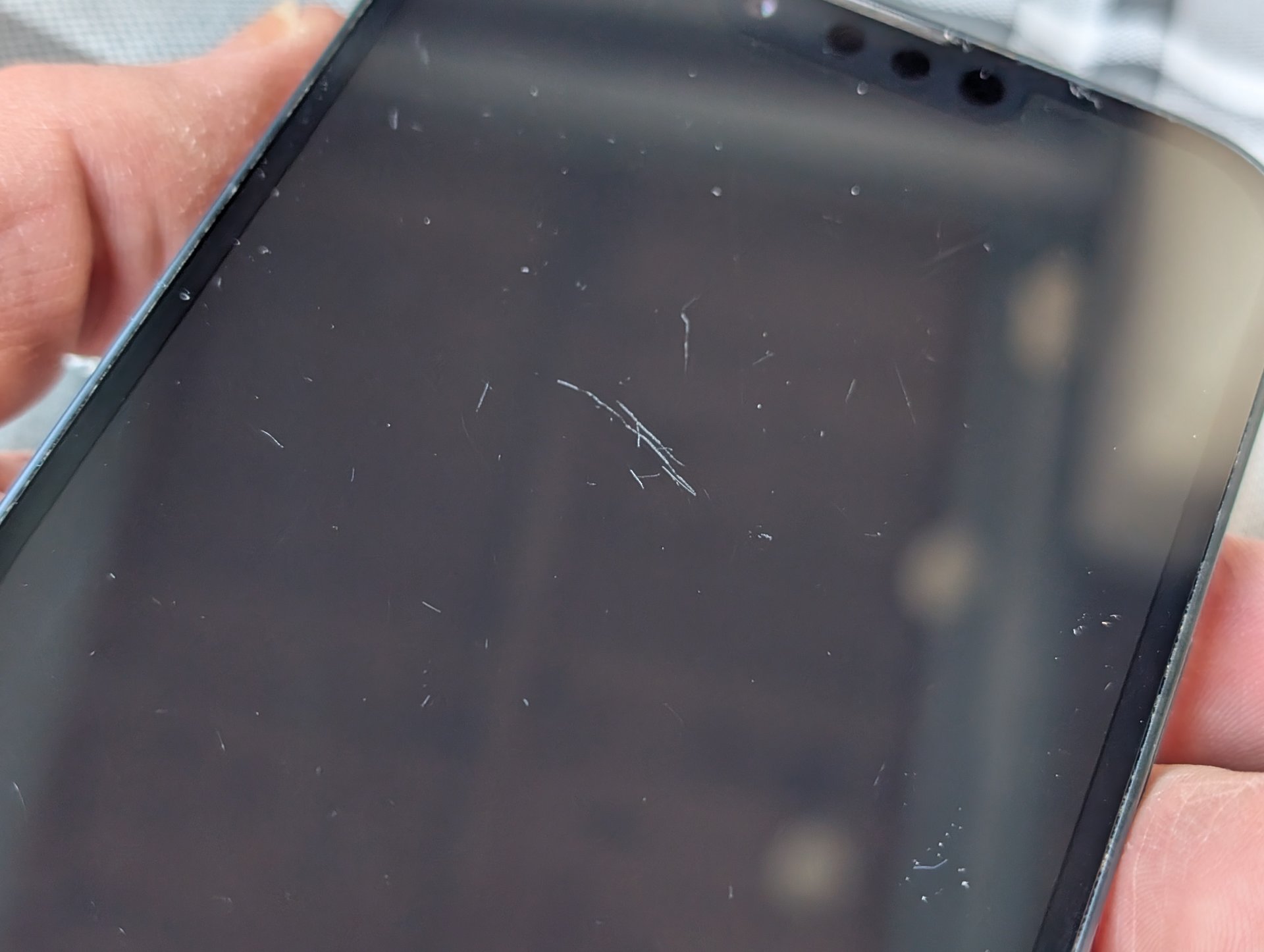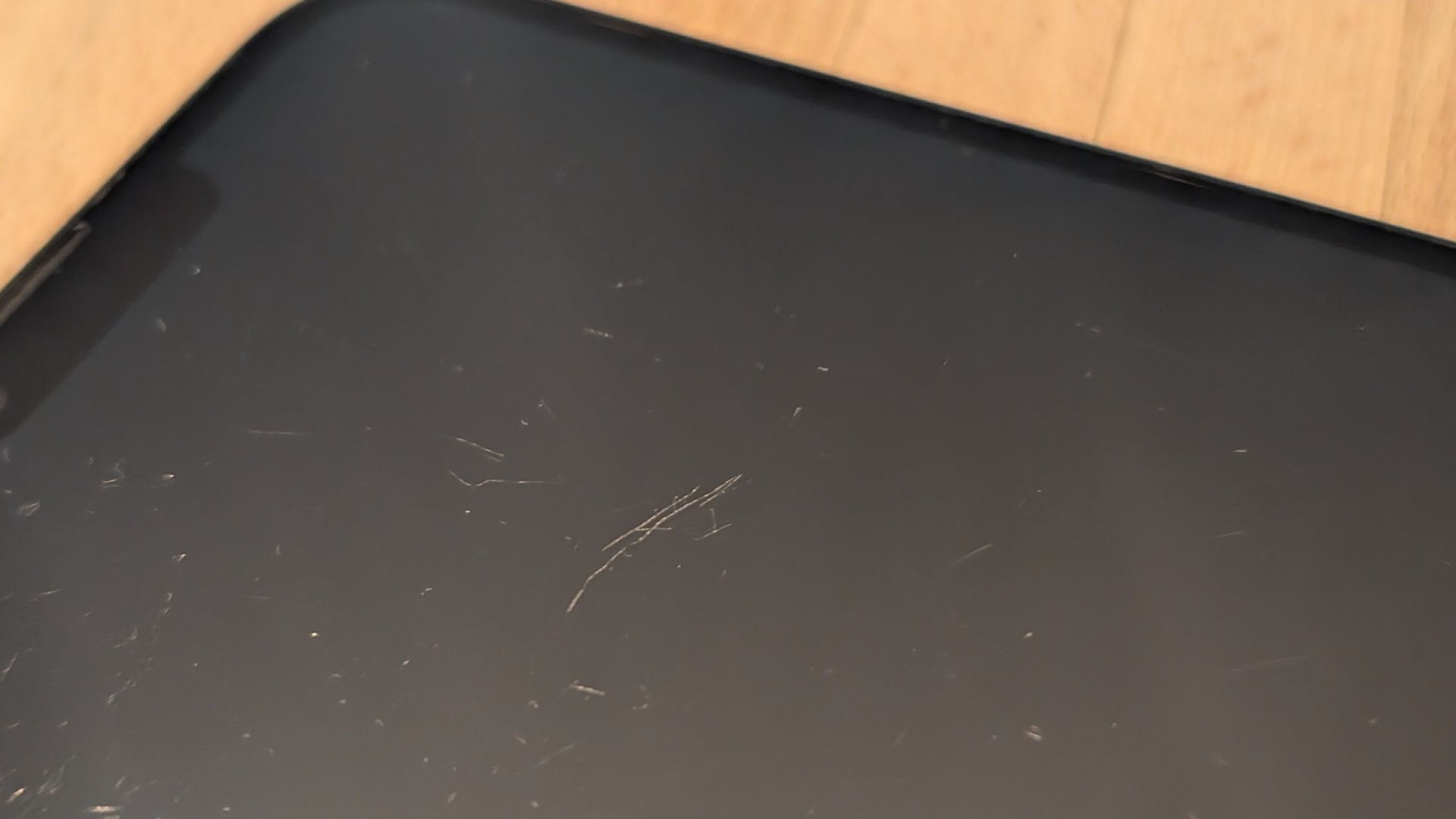 Es hat ein paar Gebrauchsspuren, da es der Kollege öfters auch mal ohne Hülle nutzte.