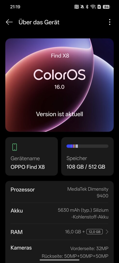 Aktuell ist color os 16 installiert, normal per OTA bezogen. Keine Beta !