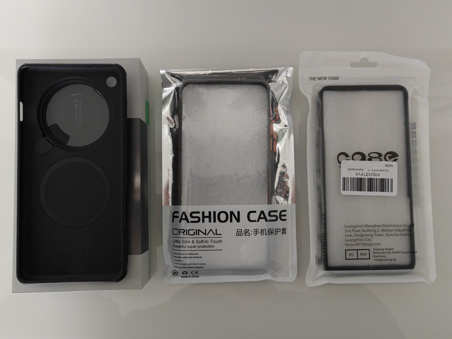 Ein original Nillkin Camshield Magnetic Case, ein weiteres bei Amazon gekauftes und ein unbenutztes (wirklich billiges) Case von AliExpress gibt es dazu.
