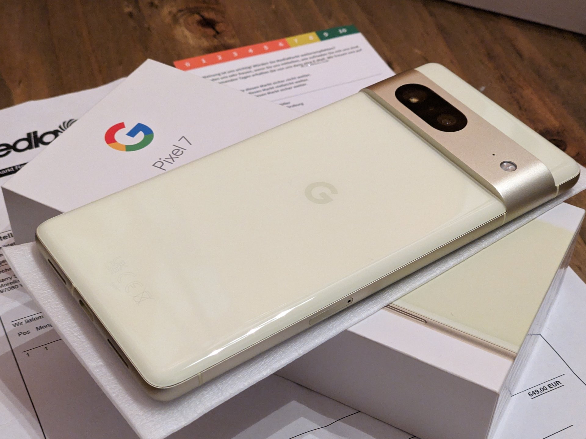 Ich biete euch diesmal, ein Pixel 7 in der Farbe Lemongrass und mit 128Gb Speicher.