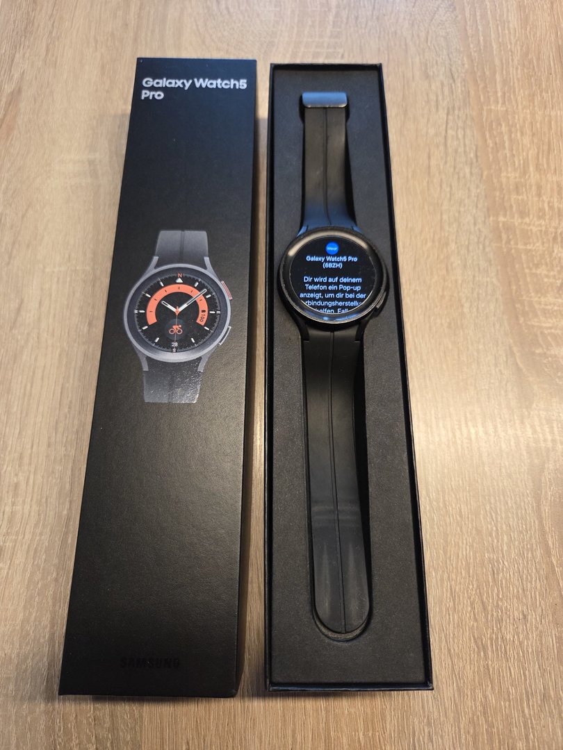 Zum Verkauf steht hier meine Galaxy Watch 5 Pro in schwarz, welche ich gegen Ende November 2023 bei Samsung gekauft habe.