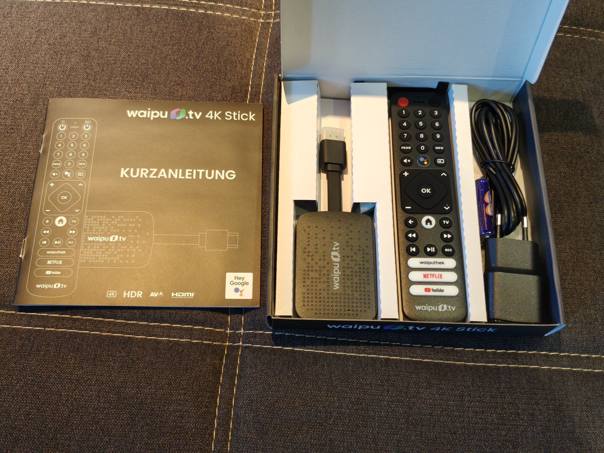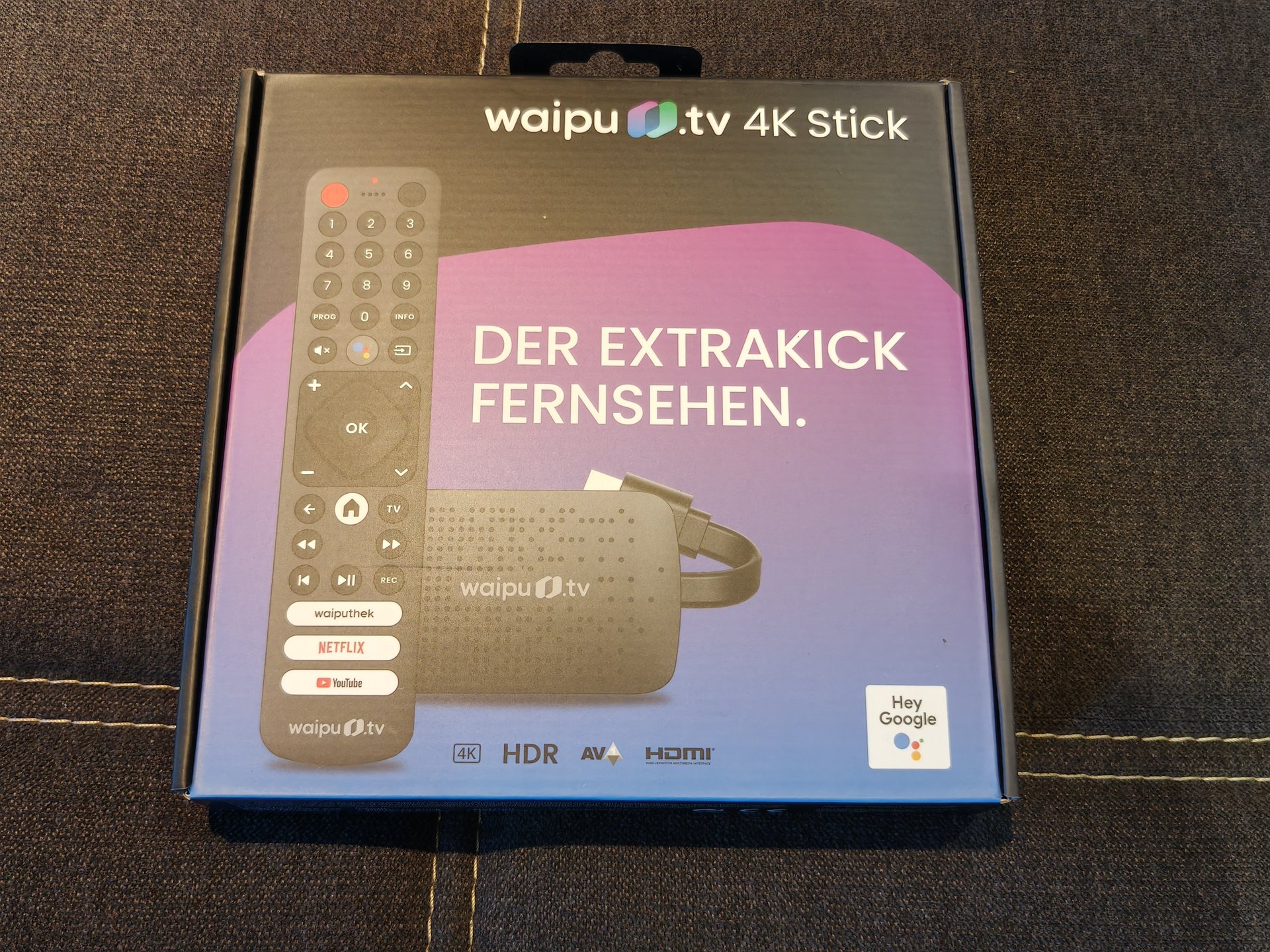 Ich verkaufe hier einen neuen waipu.tv 4K Stick inkl. Fernbedienung mit Schnellwahltasten (mit TV-Steuerungstasten). Die Verpackung wurde nur geöffnet, um einen beiliegenden Gutschein zu entnehmen. Die Rechnung von Amazon vom 14.02.2025 lege ich selbstverständlich auch bei.