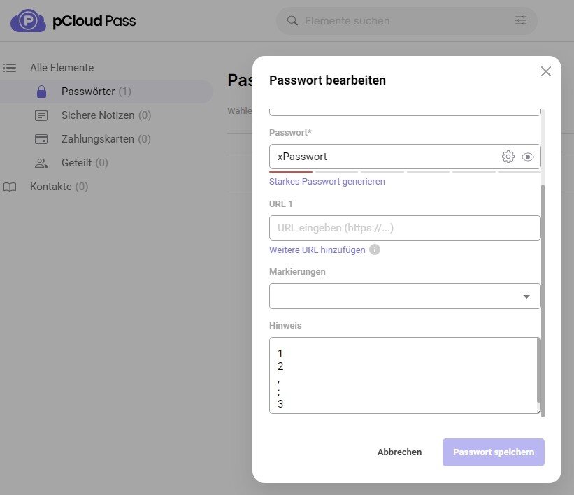4. Der Import in pCloud Pass klappt so natürlich nicht!