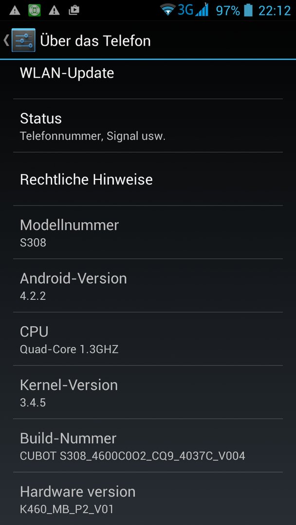 hallo nach bayern, ich habe jetzt auf dem cubot die cubot s308 official mit 4 gb speicher aufgespielt und die läuft stabil. jetzt wäre es einfach nur prima, wenn ich das handy auch auf android 4.4 anheben könnte. denn die hardware gibt nur 4.2.2 aus. grüße aus aachen. ps originaltitel der datei: Cubot S308 ROM 4 gb internal 4.2.2 android