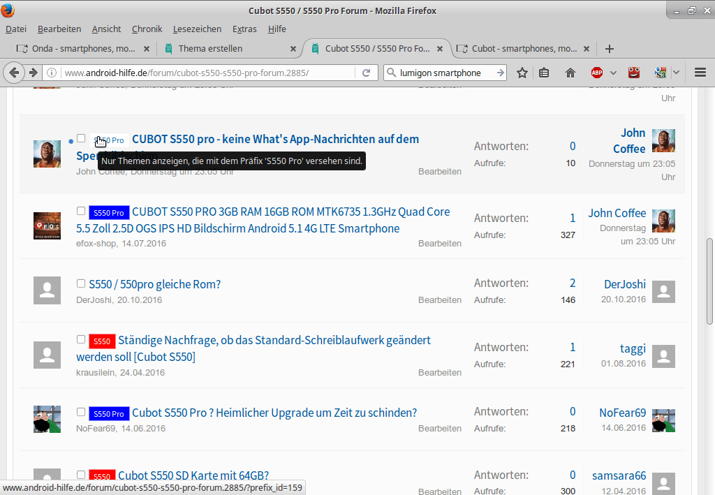 Wenn Ihr das Unterforum anwählt und auf eines der Präfixe klickt, bekommt Ihr auch nur die Themen zum entsprechenden Gerät angezeigt.