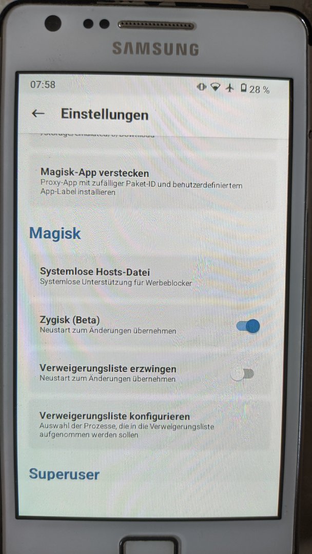 also das Samsung Galaxy S2 i9100 mit dem /e/OS/ konnte ich mit dem Triangle 3.26 apk erfolgreich das gelbe Dreieck entfernen.