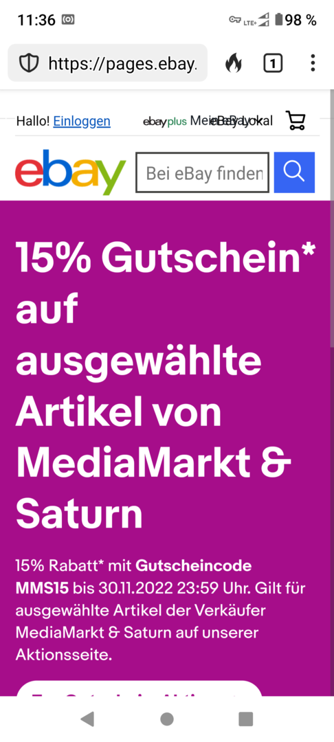 Im Mediamarkt eBay Store gibt es derzeit alle Produkte mit einen Rabatt von 15%