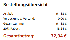 Der Rabatt wird in der Kasse abgezogen, sodass man auf 72,94 EUR kommt.