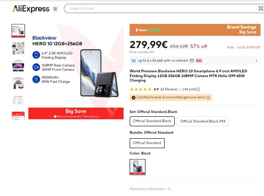 Das Blackview HERO 10 Smartphone gibt es bei AliExpress mit Versand aus Spanien für 280€ Variante 'Black')
