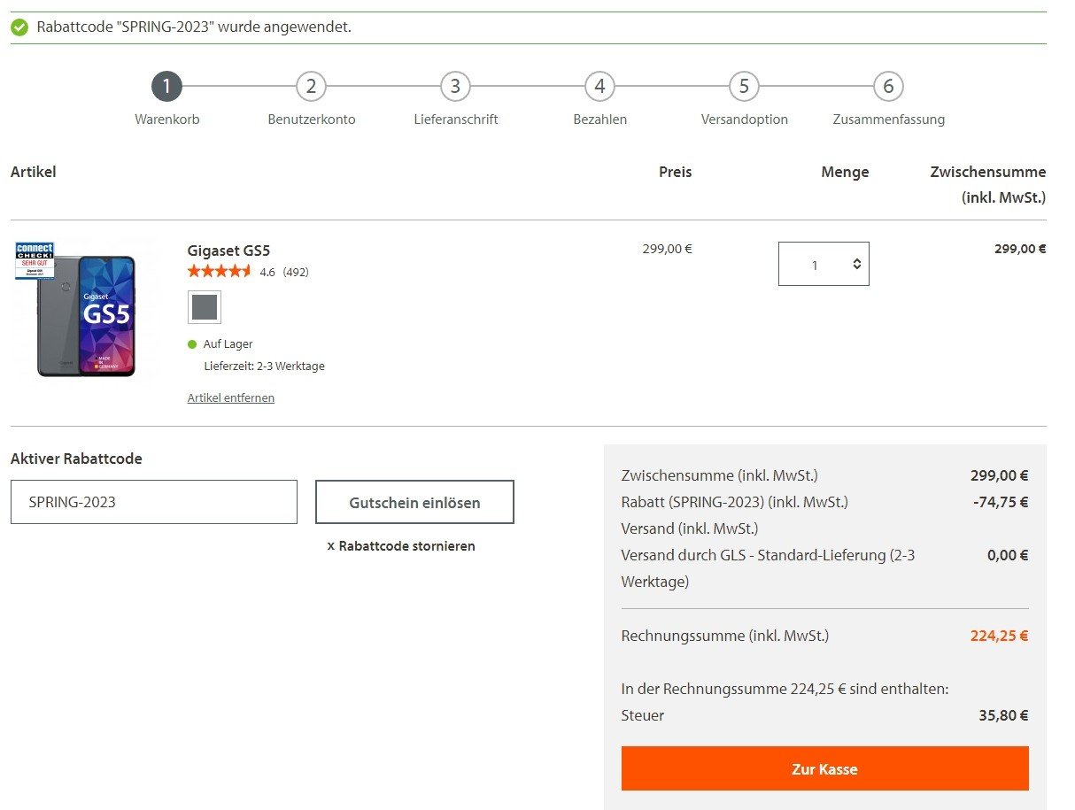 Beim GS5 sind es 74,75€ Ersparnis