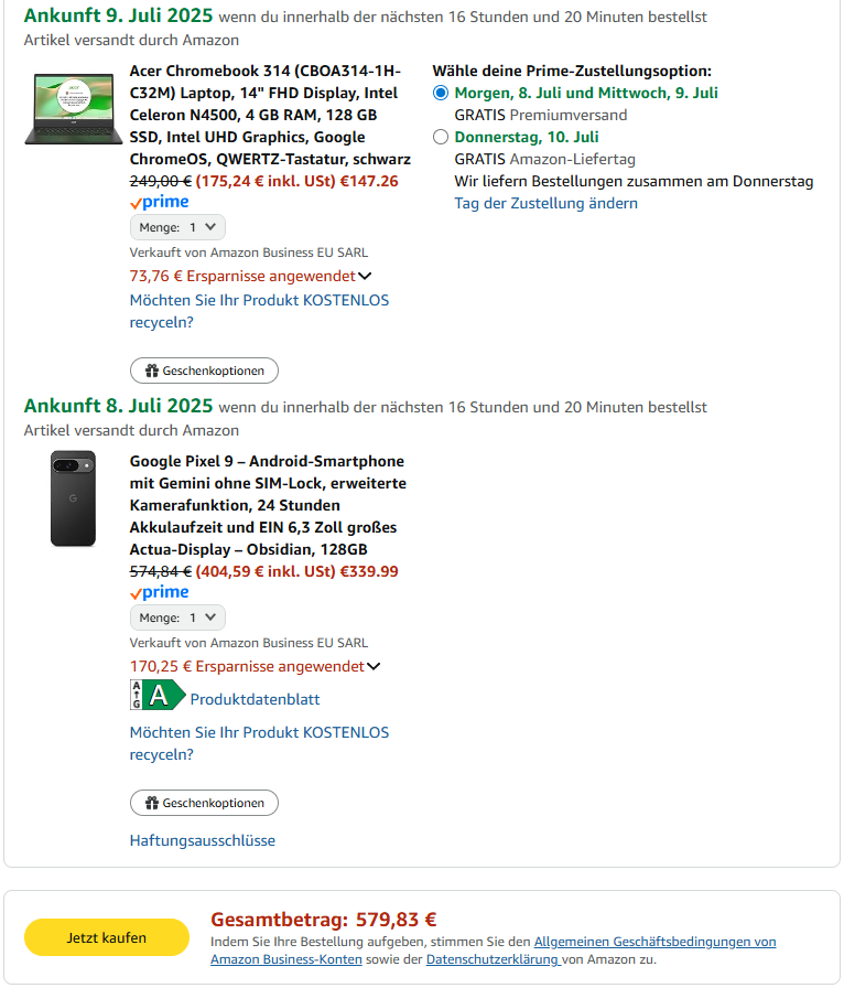 Google Pixel 9 + 14" Acer Chromebook für 580 EUR !