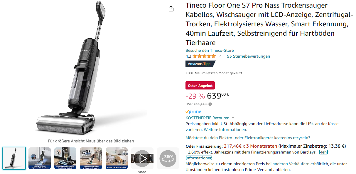 Sieht auf den ersten Blick ganz beeindruckend aus, oder? Nur lag die UVP für den Tineco Floor One S7 Pro nie bei 899,- €, sondern schon immer bei 799,- €. Und da liegt sie auch heute noch (klick!).
