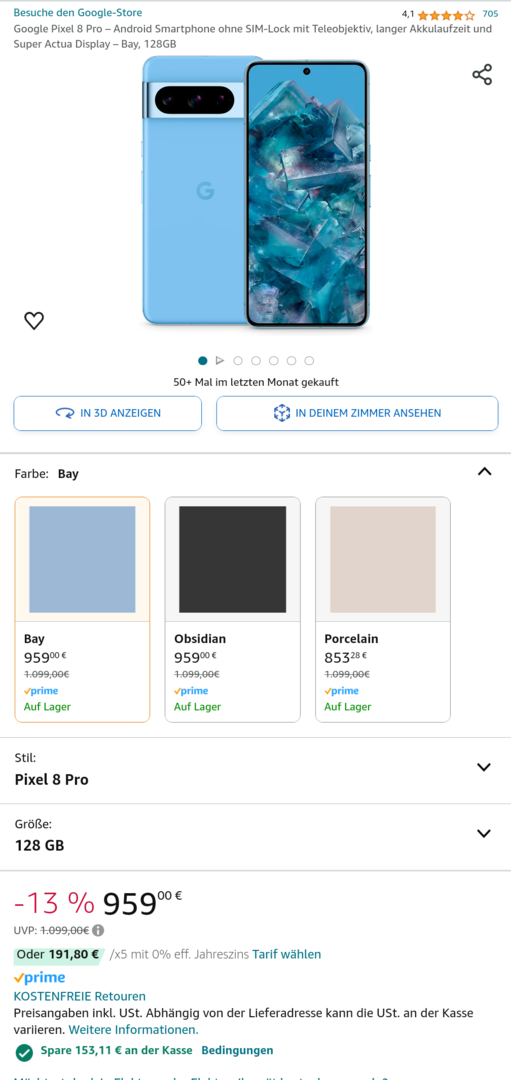 Google Pixel 8 Pro – Android Smartphone ohne SIM-Lock mit Teleobjektiv, langer Akkulaufzeit und Super Actua Display – Bay, 128GB : Amazon.de: Elektronik & Foto
