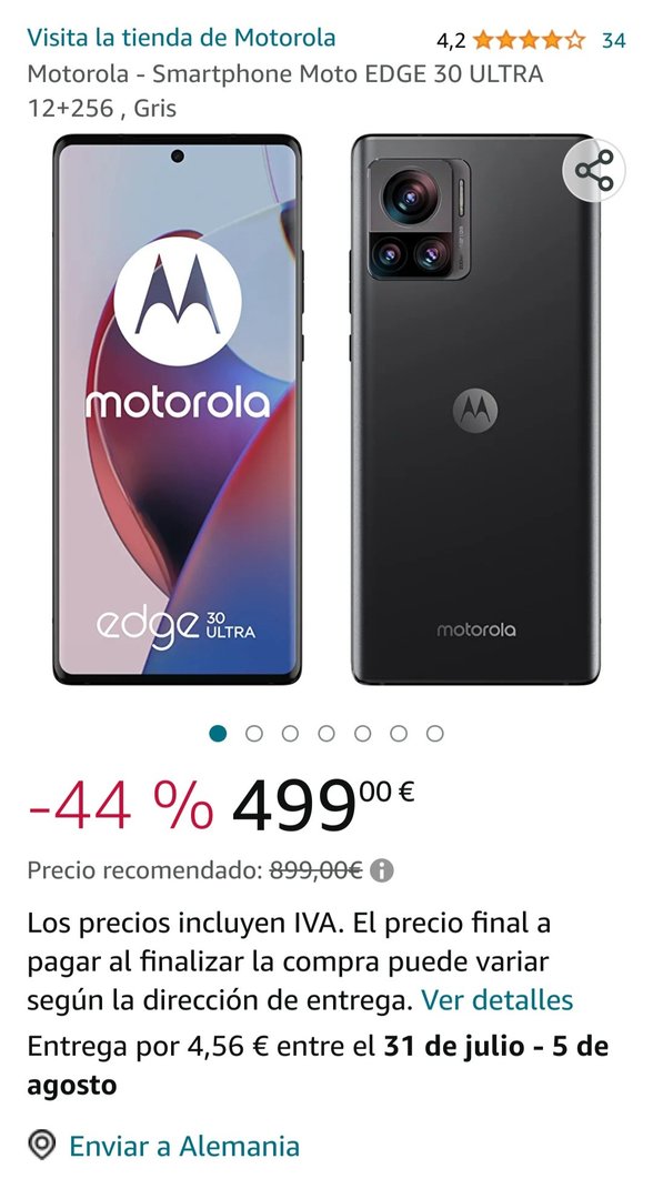 Bei Amazon Spanien gibt es aktuell das Motorola Edge 30 Ultra für ca. 495€