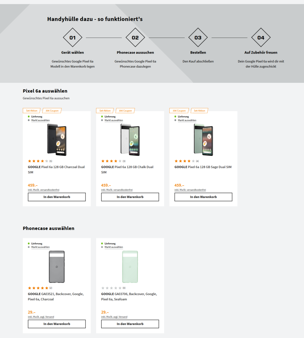 Saturn bietet das Pixel 6a für 459€ dazu gibt es dann noch die Originalhülle im Wert von 29€.