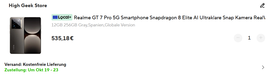 Ali Spanien bietet das Realme GT7 Pro in Grau mit 12/256GB für 495,18€ an.