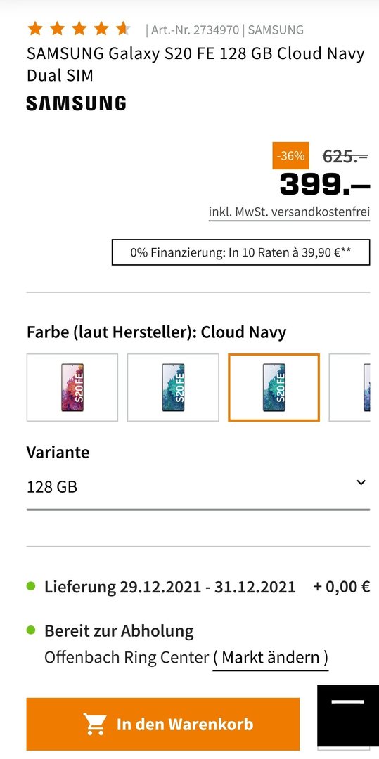 Gibt es bei Saturn das Galaxy S20 FE NE für 399€