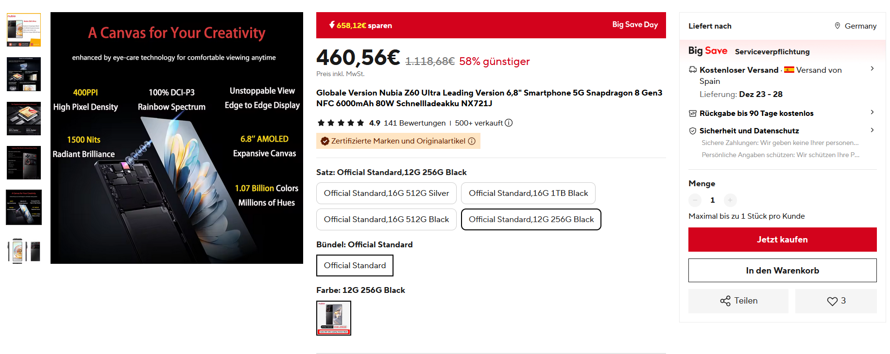 Bei Ali bekommt man aktuell das Nubia Z60 Ultra Leading Version mit 12/256GB für 460,56€