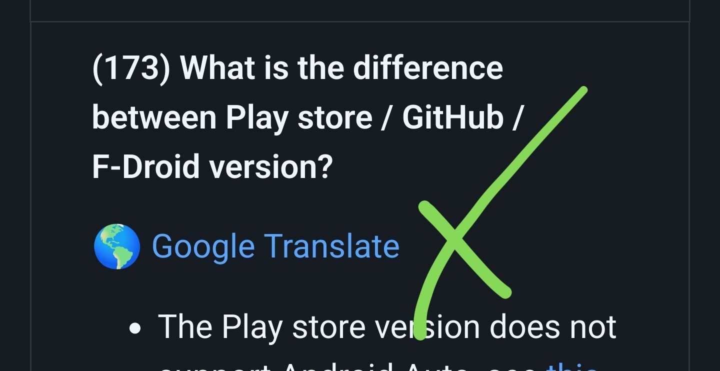 - Die Play Store-Version unterstützt Android Auto nicht, siehe diese FAQ für weitere Informationen