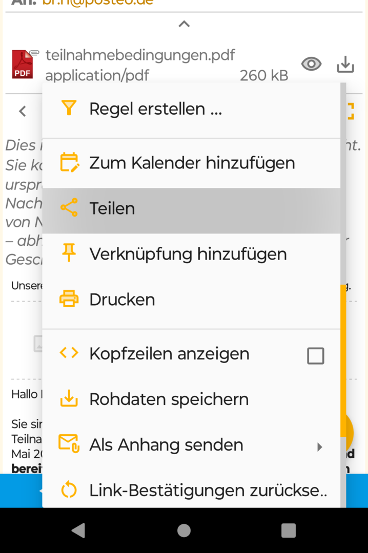 Bei mir ist da aber nichts. Und der Kreis unten (Antworten, Weiterleiten, Verschieben, ...) hat auch nichts, was irgendwie nach Drucken aussieht.