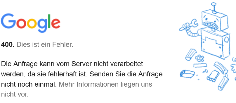 Drücke ich dann auf den angezeigten Button: hinzufügen zu Google Wallet, kommt jedesmal eine Fehlermeldung Error 400 von Google.