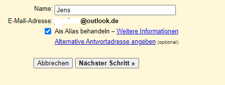 ich habe ein Mail Konto bei Microsoft, also Outlook. Nun möchte ich über GMail die Mails von Outlook abrufen (das funktioniert) aber auch im Namen von Outlook Mails versenden.