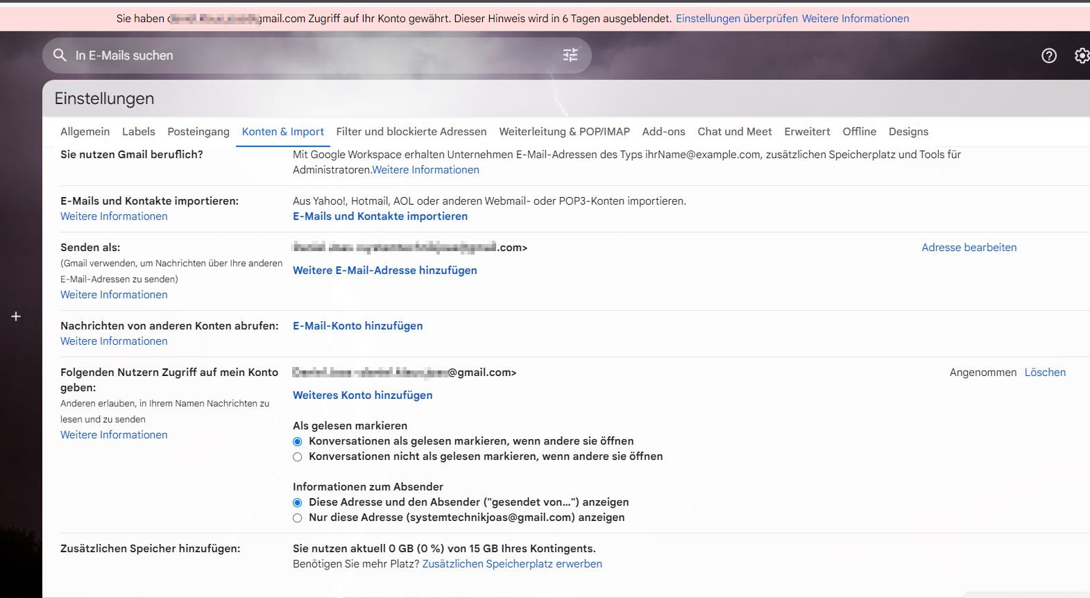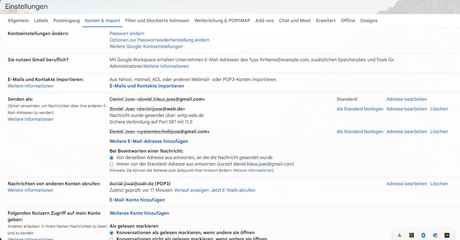 Ich kann von meinem "privaten" Account auch die neue business Mailadresse auswählen und Mails in ihrem Namen verschicken. Allerdings die Mails die auf die business Adresse kommen, werden nicht an meinem privaten Account angezeigt.