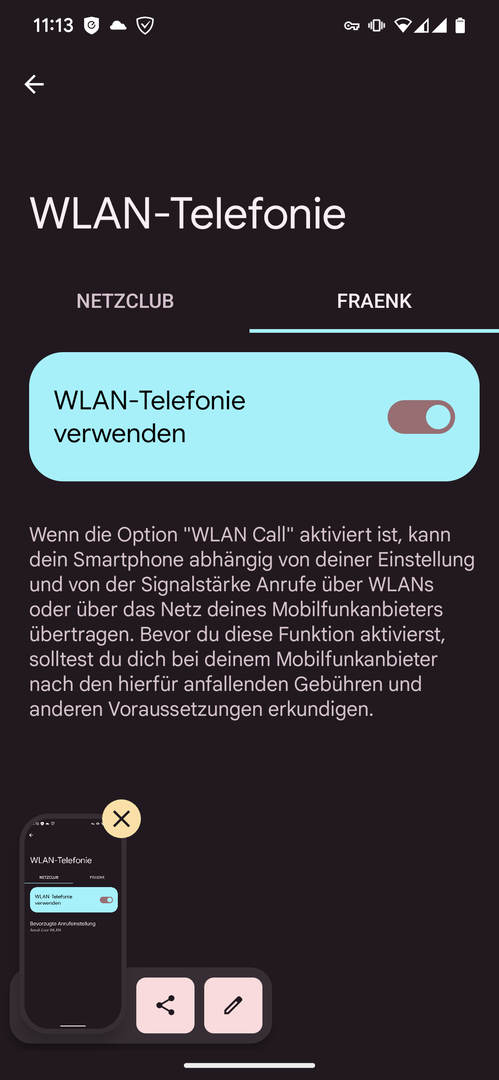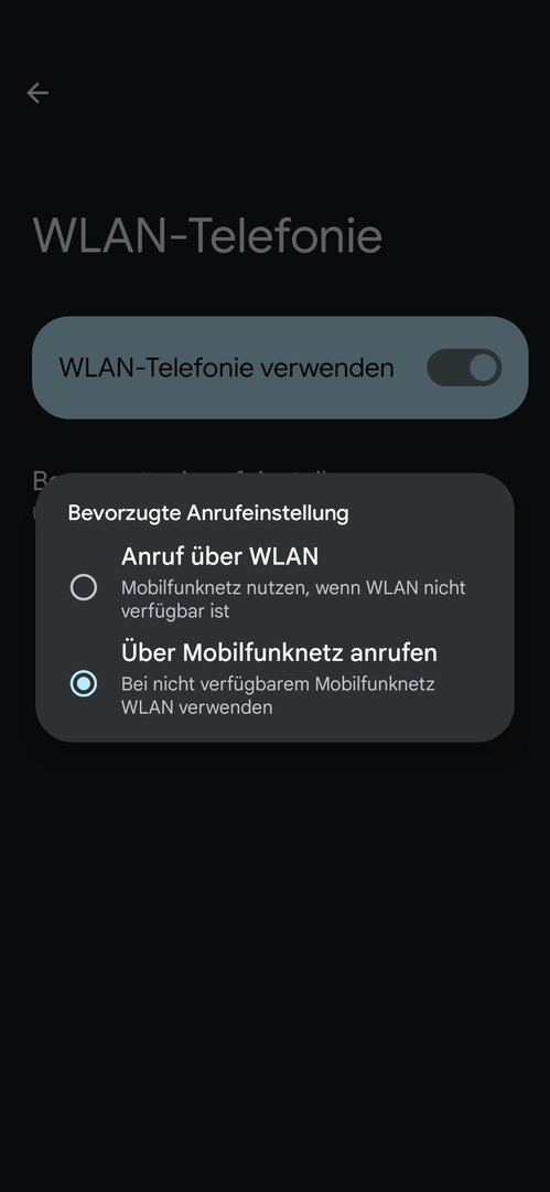 Ich hab auch nur die Einstellung bei der SIM Karte aktiviert, in Anruf ist sie sogar deaktiviert und der WLAN Anruf geht trotzdem. Schon seltsam.