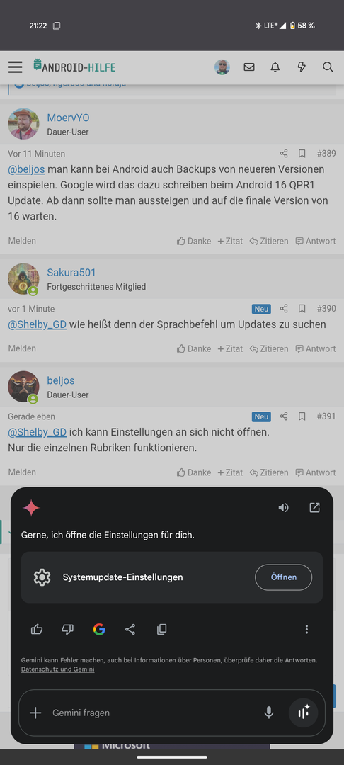 du kannst die Einstellungen über Gemini öffnen, zumindest funktioniert es bei mir und somit auch nach Updates suchenbeljos schrieb:Installieren sich die nächsten Updates selbständig wenn ich nicht in die Einstellungen kommen kann?