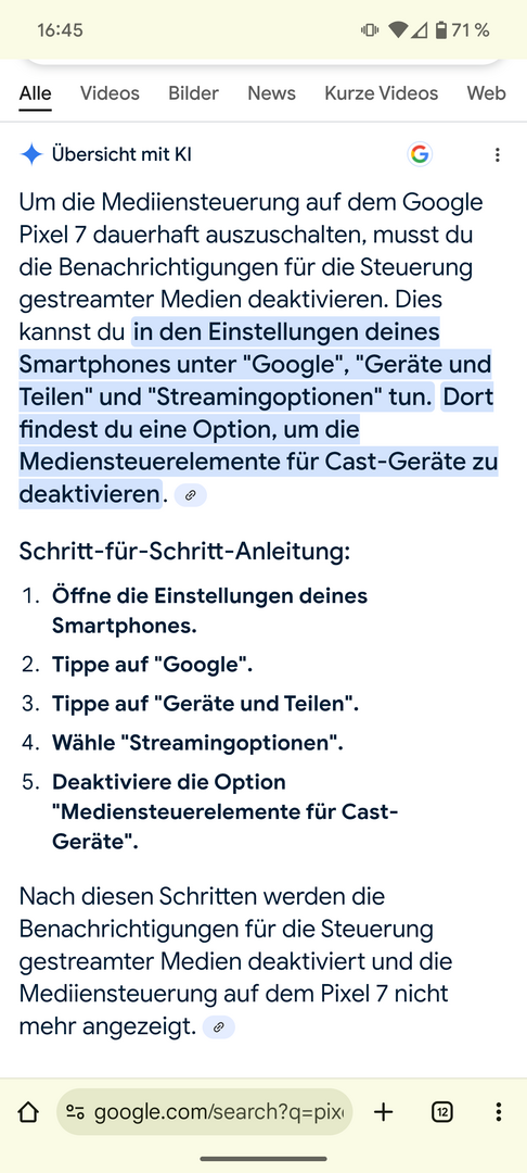 Ich habe schon selbst in den Einstellungen gesucht, dass Internet durchforstet und ChatGPT befragt, leider ohne Erfolg. Alle Tipps beziehen sich vermutlich auf ältere Android Versionen oder Geräe von anderen Herstellern. Bei dem Pixel funktioniert keiner davon.