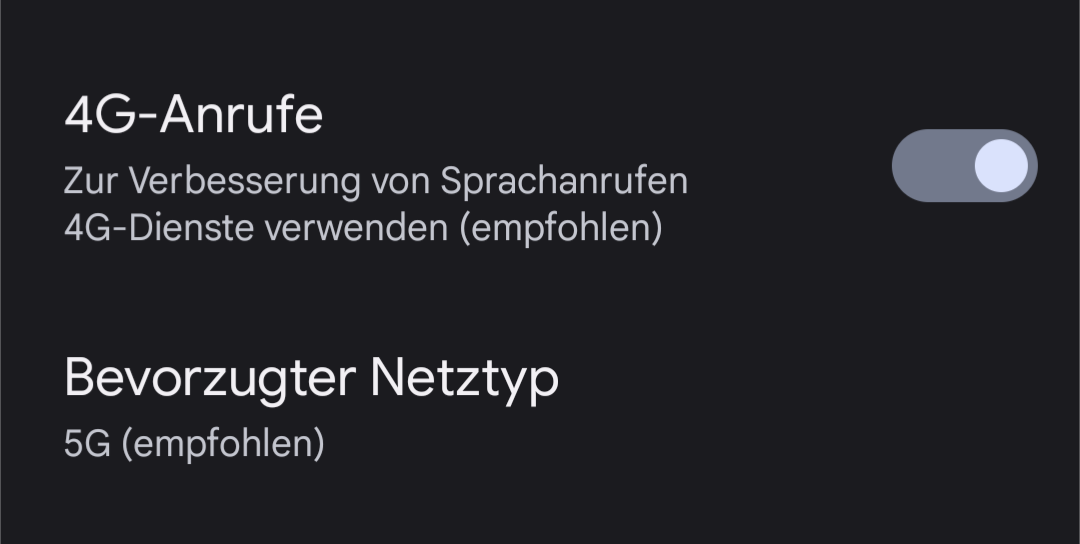 die Option, VoLTE ein- oder auszuschalten, fehlt bei Google Pixel Smartphones mit einem unserer Verträge in der Tat.