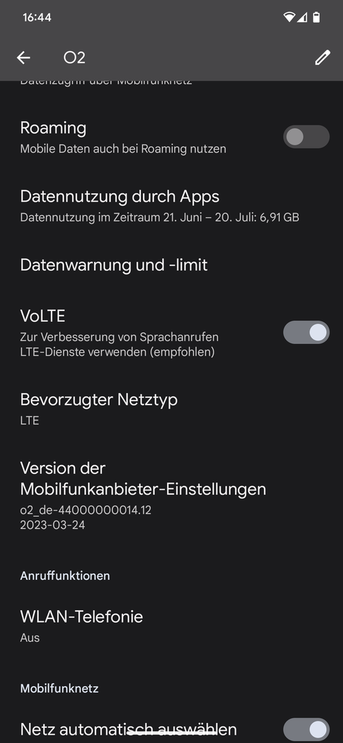 Mobil Daten sind auf dieser Sim eigentlich immer deaktiviert. Wenn ich die mobilen Daten aktiviere ist der Menüpunkt weg. Schaut eigentlich wie ein VoLTE Schalter mit anderer Bezeichnung aus. War daß schon immer so?