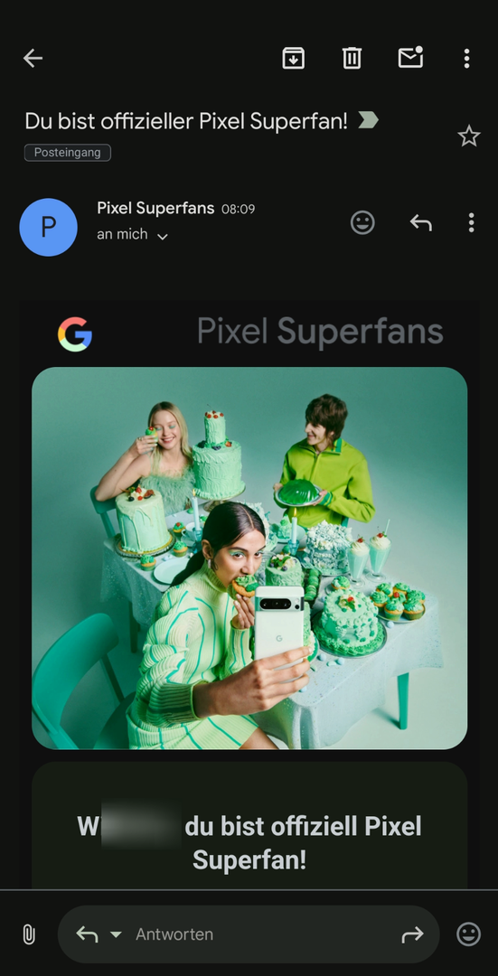 Ich habe gerade die mail bekommen, dass ich nun offizieller Pixel Superfan bin