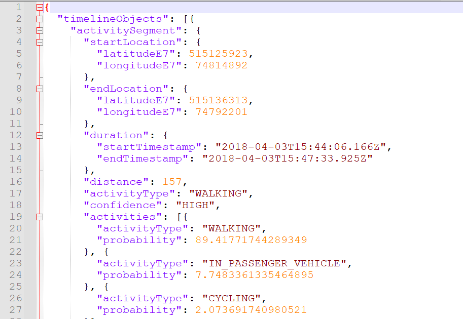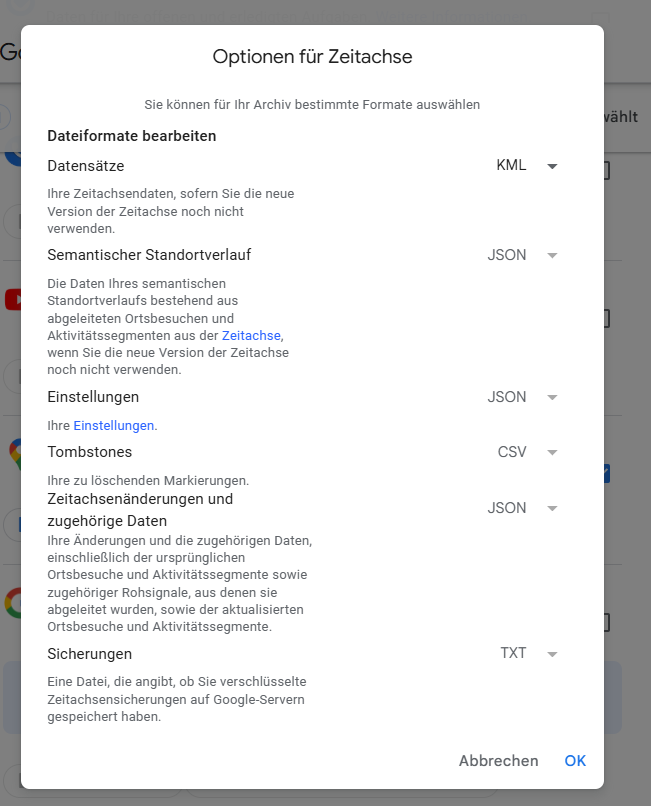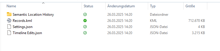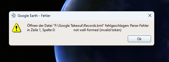 Ich habe eine meiner alten Zeitleisten per Takeout von den Servern geladen (noch nicht aufs Phone umgestellt) - und zwar im kml Format. Größe der Records.kml 713 MB seit 2018. Ich kann sie mit Notepad++ oder einem anderen Editor öffnen, ist ja wie die json eine reine Textdatei. Allerdings scheitert die Öffnung sowohl mit Google Earth (Fehlermeldung s. Screenshot) als auch mit Google Maps (da steht nur "Fehler"). Vllt. ist sie aber auch nur zu groß, wie könnte ich sie quasi zerschneiden (Anfang und Ende Zeichen)? Andererseits gibt es auch hier im Semantic Location History - Ordner (monatliche Daten) nur im json Format (3. Screenshot). Oder gibt es irgendwelche Tools?