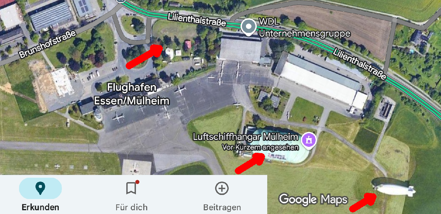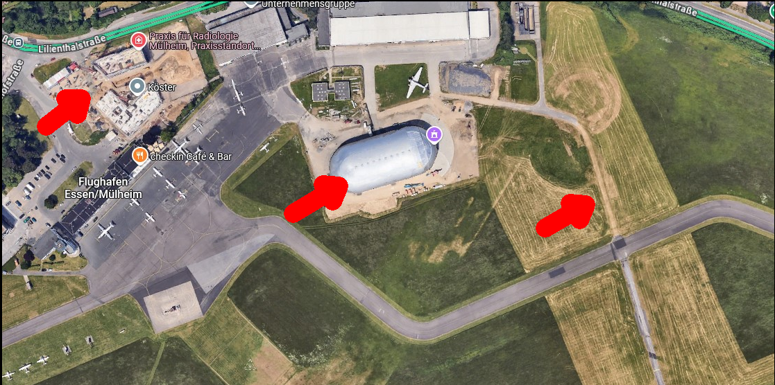 Pfeil Mitte: Android: alter Luftschiffhangar / PC: neuer Luftschiffhangar