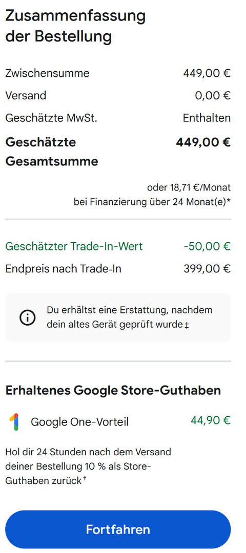 Du zahlst 369 Euro für ein Upgrade von 9 Pro auf 10 Pro ?uNique285 schrieb:Für ein Pixel 9 Pro gibt es 730€ Trade-In.
