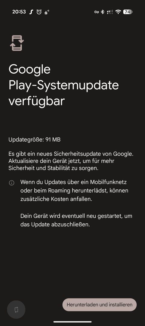 Hallo es ist ja heute ein neues Google Play System Update verfügbar gestellt worden mit 91MB