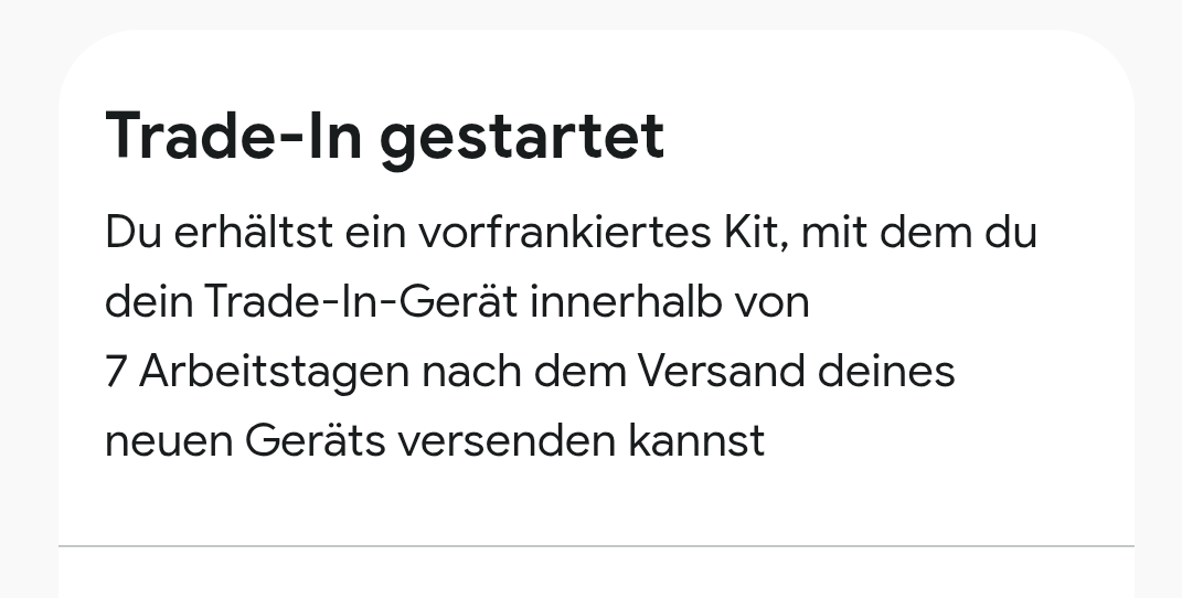 Folgendes Vorgehen habe ich mir überlegt: Restzahlung der drei Beträge, damit das Pixel 8 mir gehört, Kauf des Pixel 10 (Pro) inkl. Trade-In des Pixel 8 - Angabe „guter Zustand“, sobald da Pixel 10 da ist, das Pixel. 8 zur Reperatur einsenden, anschließend Pixel 8 zum Trade In senden.