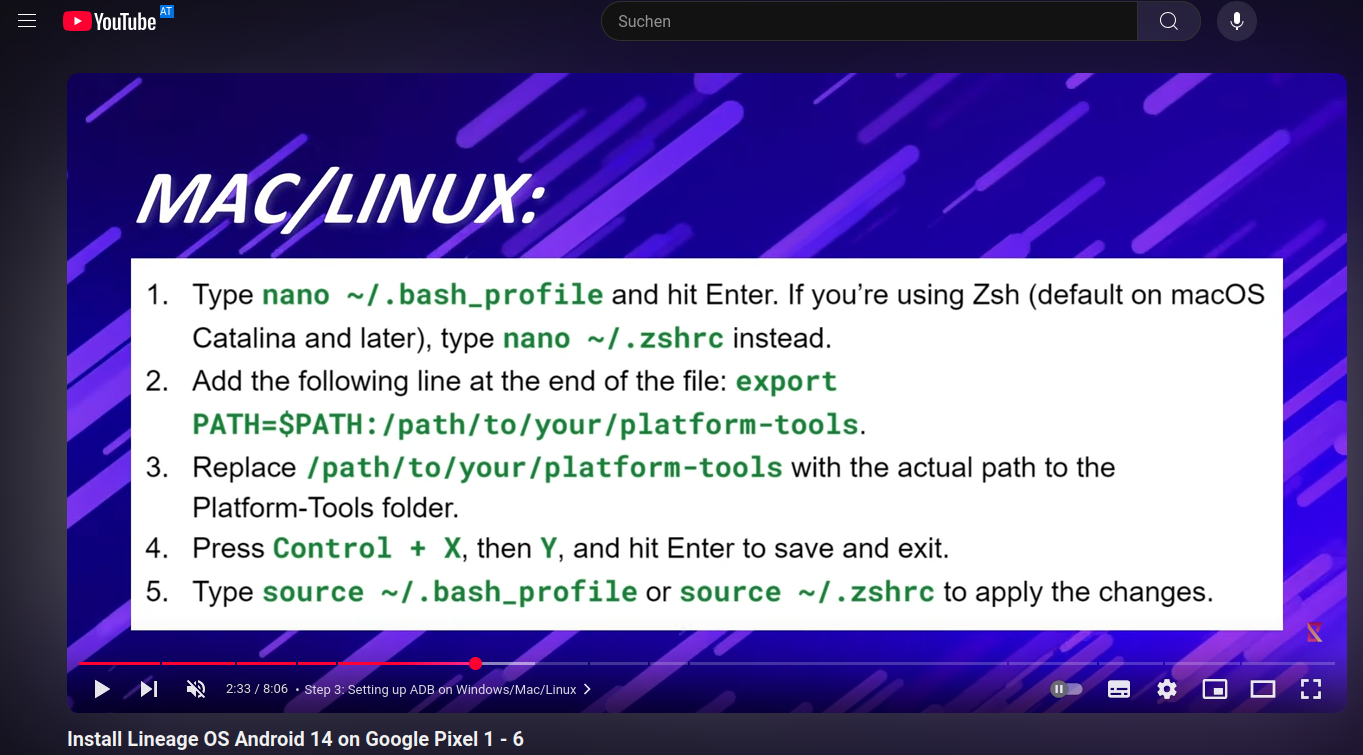 Soll ich hier die Zeile: "export PATH=$PATH: /path/to/your/platform-tools" einfügen?