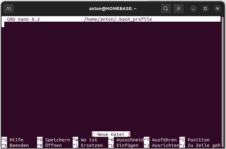 Wenn ich den Befehl "nano ~/.bash _profile im Terminal eintippe kommt folgende Ausgabe: