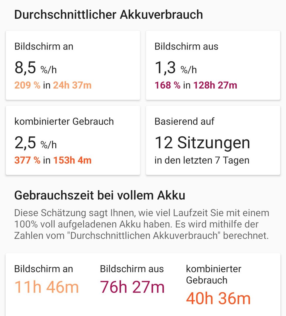 Ganz ehrlich: so schlecht finde ich diese Werte nicht ... je nachdem, wo ich war und was ich gemacht hab', hatte ich unter A12 auch keine besseren (und auch nicht auf dem Pixel 3a)Kaltfuchs83 schrieb:Bei mir tut sich diesbezüglich rein gar nichts in die positive Richtung.