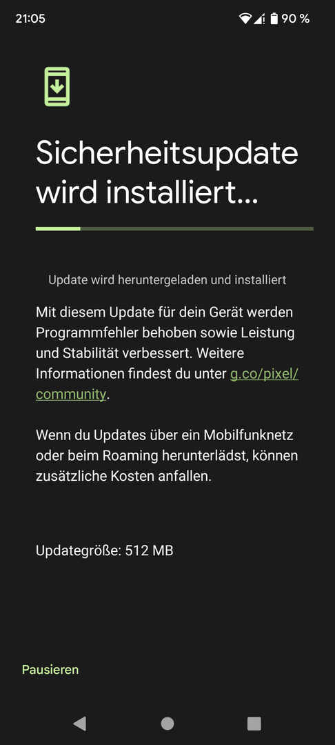 Das Google-Play-Systemupdate ist unabhängig vom monatlichen Pixel-Sicherheitsupdate.