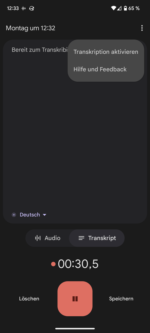 Mit der alten Version funktionierte das Transkribieren. Die "automatische Transkription & Geräuschbenachrichtigung" (es handelt sich um eine andere App) funktioniert nach wie vor und zeigt ein Transkript an.