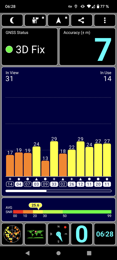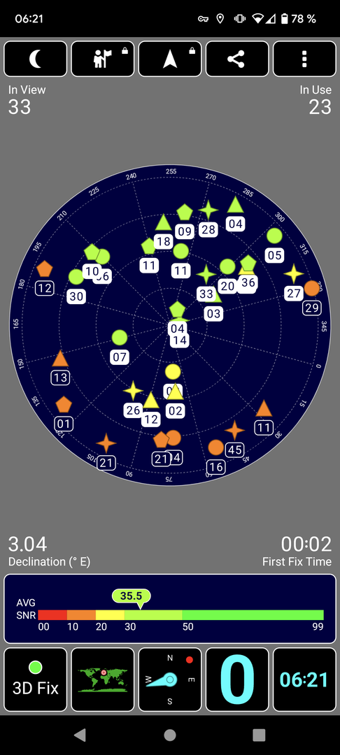 könnt ihr euch mal bitte auf einen freien platz stellen. eine app wie gps status oder locus nehmen.