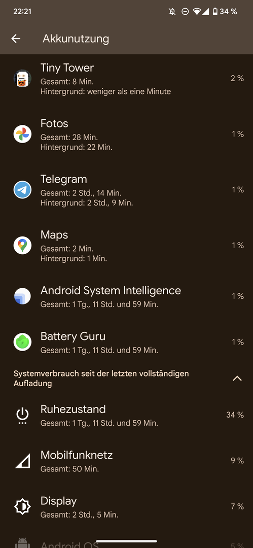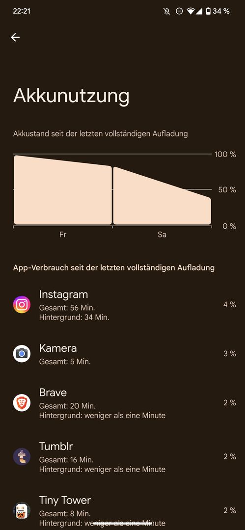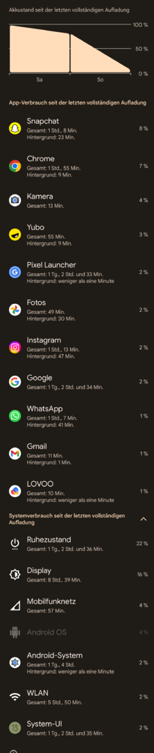 Edit: ich habe das Pixel jetzt noch den Abend im WLAN genutzt und bin bei 15% und zirka 4 Stunden Displayzeit angekommen.