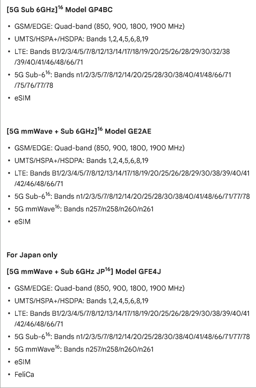 Laut dem Australischen Google Store (kann man ja ganz einfach ganz unten auf der Seite umstellen) ist es ein Unlocked-Gerät (s.u.). Alledings haben die ein anderes Modell (das gleiche wie in den USA) mit der Bezeichnung GE2AE (statt GP4BC in der EU). Da gibt es kleinere Unterschied in den möglichen Frequenzbändern (siehe 2. Bild: LTE-Band 32 fehlt, dafür ist Band 42 drin, im 5G-Bereich fehlt n75 und n76, dafür ist aber mmWave mit n257/n258/n260/n261 dabei, das bei der EU-Version fehlt). Diese Bänder sind aber alle momentan in Deutschland nicht relevant (B32 könnte irgendwann mal für stationäres LTE-Zuhause bei T/VF verwendet werden), weshalb Du eigentlich keien größeren Probleme erwarten musst. Höchstens bei Geräteproblemen könnte der europäische Support dich an den australischen verweisen (also auch bei Geräterücksendungen oder bei einem Tausch wegen eines Defekts), Garantie gibt es dort auch zwei Jahre (siehe 3. Bild).Trunkz schrieb:Hmmm bin gerade bei meiner Schwester in Australien. Da gibt es die 512 GB Version. Ob die Teile net/simlock haben?
